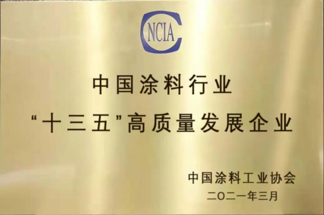 2021年3月25日,公司榮獲中國(guó)涂料行業(yè)“十三五”高質(zhì)量發(fā)展企業(yè)獎(jiǎng)項(xiàng)。
