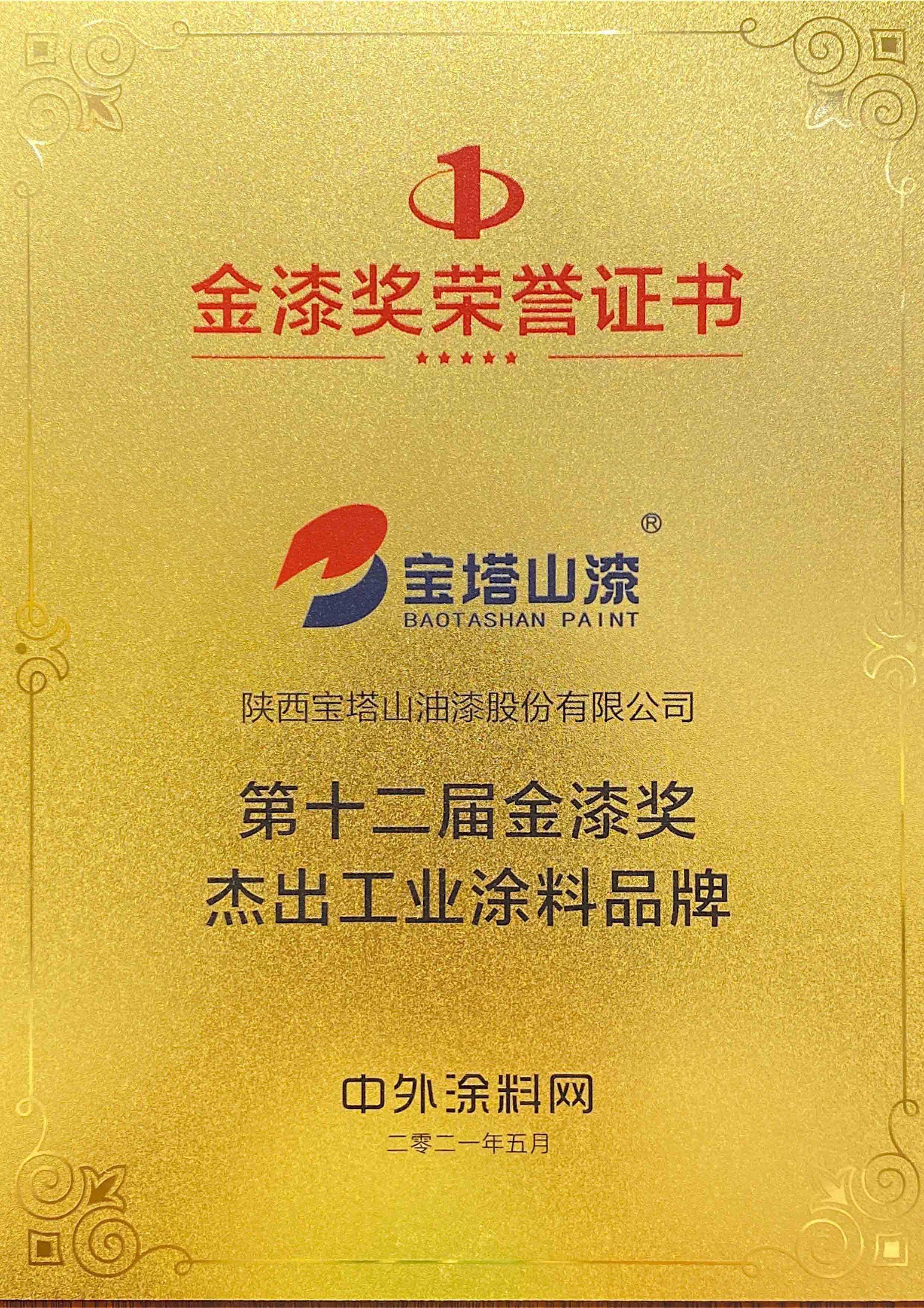 2022年6月,寶塔山漆榮獲第十三屆金漆獎(jiǎng)“杰出工業(yè)涂料品牌”。