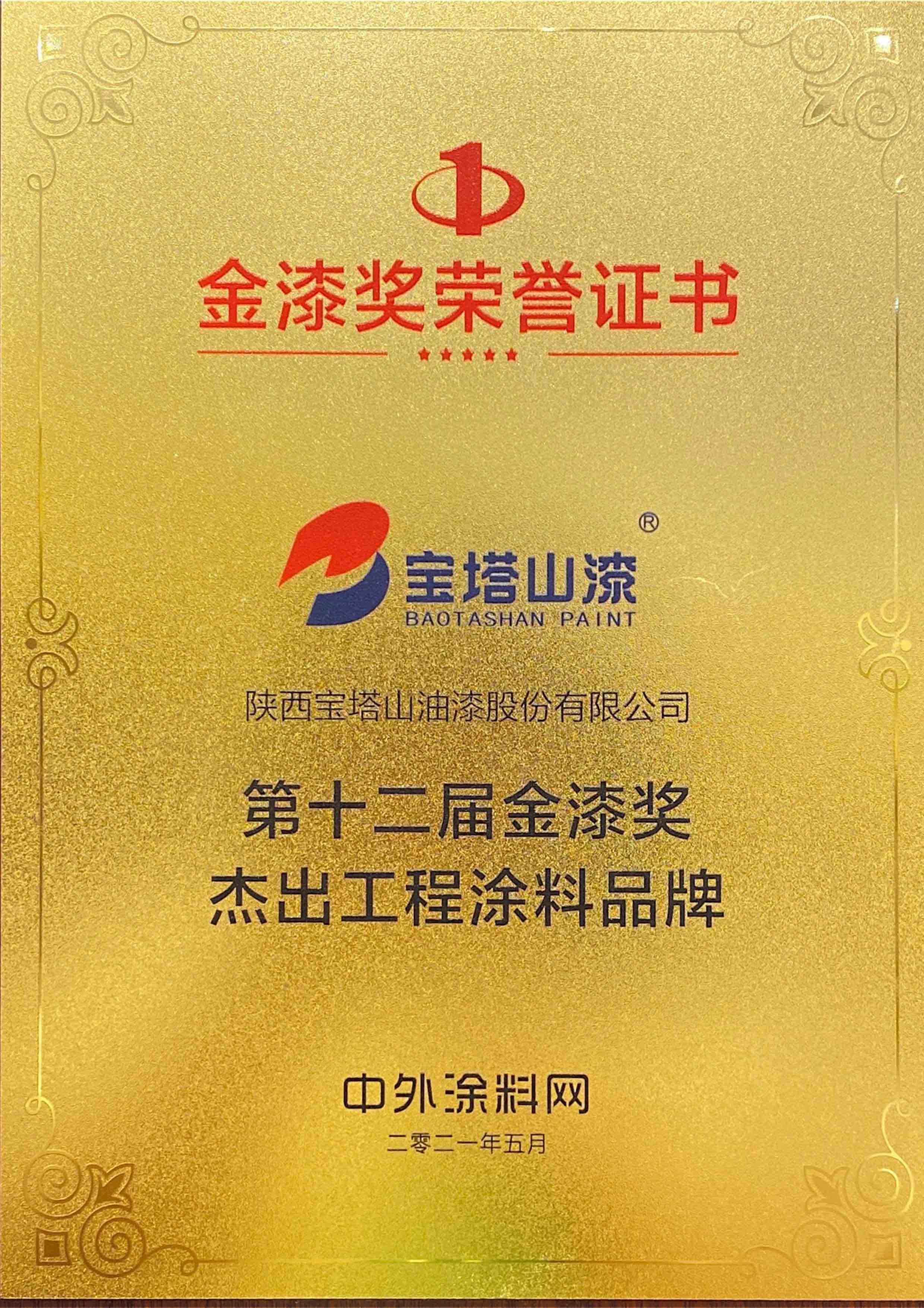 2019年6月,寶塔山漆的“寶塔山”品牌在中外涂料網(wǎng)第十屆金漆獎(jiǎng)評(píng)選活動(dòng)中被評(píng)為“杰出工程涂料品牌”