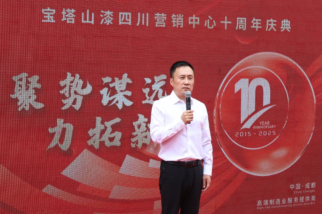 2025年5月26日,聚勢謀遠 力拓新局——寶塔山漆四川營銷中心十周年慶典盛大啟幕。陜西寶塔山新材料科技有限公司董事長楊鵬剛等管理層及客戶代表出席此次活動。