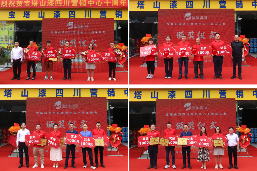 慶典現(xiàn)場先后頒發(fā)了友好商會、寶塔山漆四川旗幟、友好合作單位、優(yōu)秀銷售部、優(yōu)秀員工、銷售明星、營銷金星、營銷金牌、營銷狀元多項榮譽,表彰在十年歷程中做出卓越貢獻的單位與個人,每一個獎項都承載著對獲獎?wù)叩恼J(rèn)可與鼓勵。